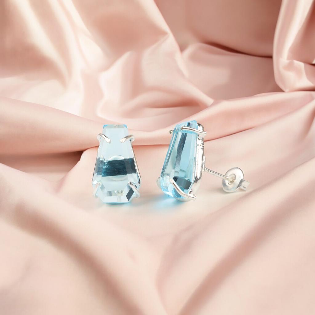 Sky Blue Topaz Gemstone 925 Sterling Silver Jewelry Handmade Stud Earrings 0.6" EE-131-12