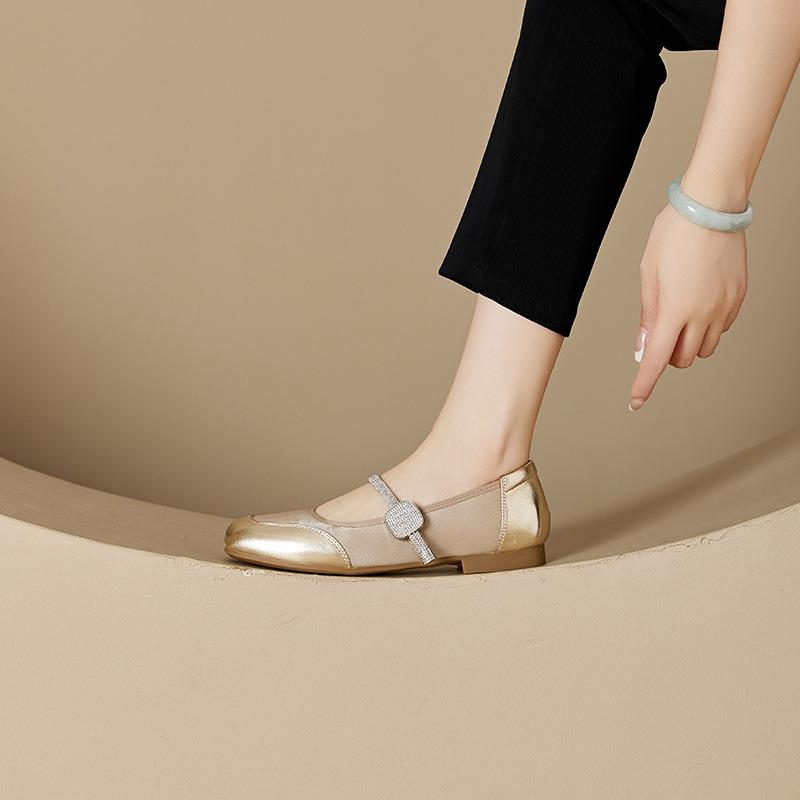 Autumn Rhinestone Casual Shoes Women's Splicing Square Head Mary Jane Women's Shoes Women's Fashion Single Shoes Women