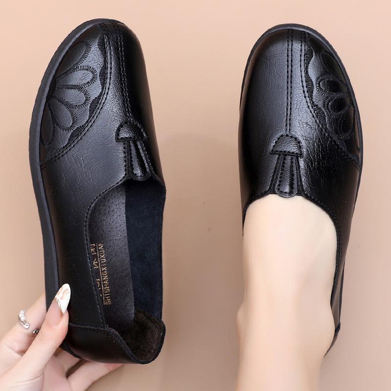 Spring and Autumn Shoes, Single Shoes with Soft Soles, Comfortable and Lightweight Middle-aged and Old Women's Shoes, Flat-soled Elderly Leather Shoes