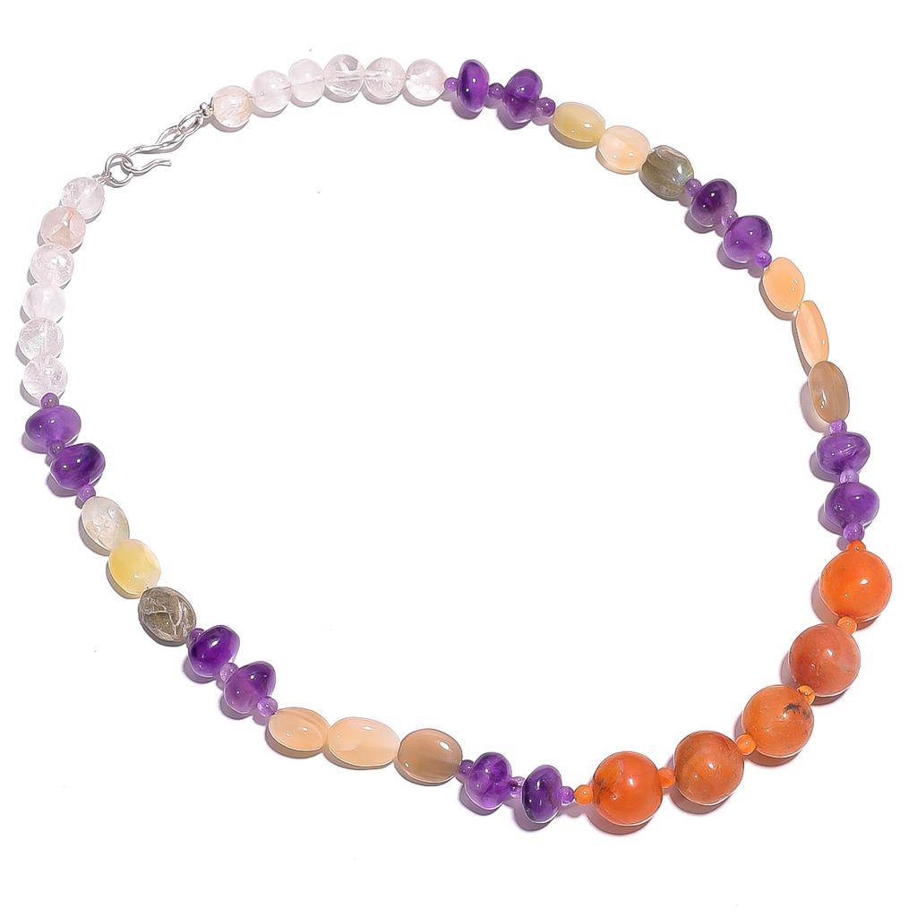 Natural Carnelian Amethyst Moonstone Gemstone Smooth Beads Necklace 17" UB-4274 UB-4274