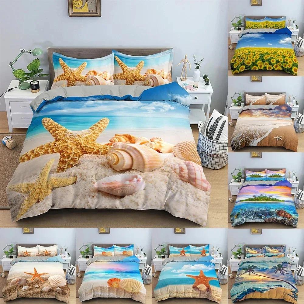 Starfish Duvet Cover Conch Beach Pattern Bedding Set For Kids Bedroom 3D Quilt Cover Ocean World Comforter Covers Home Textile