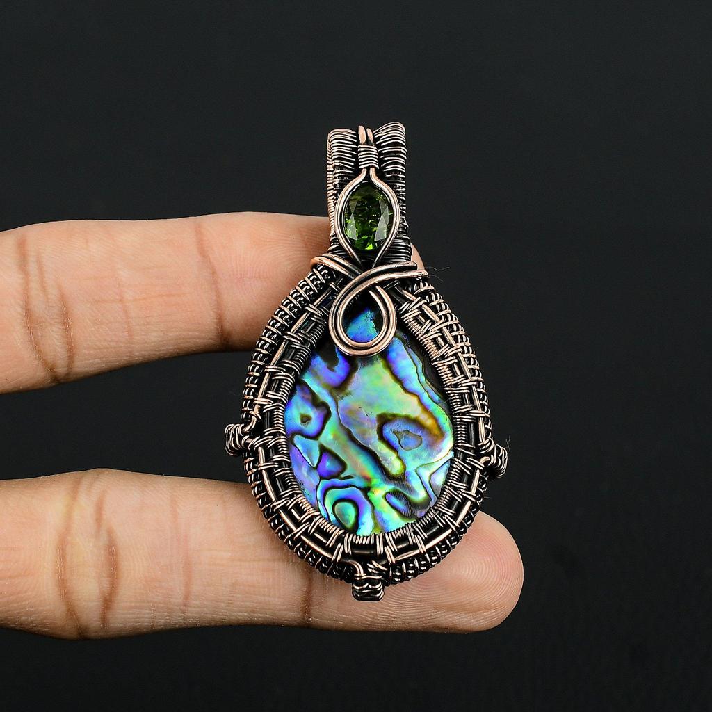 Abalone Shell 999 Copper Wire Wrapped Pendant, Handmade Gemstone Pendant Jewelry, Gifts For Wife Brand New Pendant