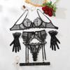 Womens 5 Piece Set Transparent Floral Lace Bra Thong Garter Set with Gloves Sexy Lingerie Sets Sensual Underwear Erotic Costumes
