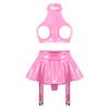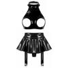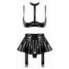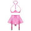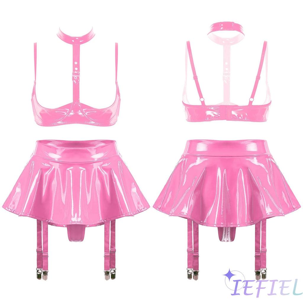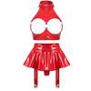 Women Shiny Leather Lingerie Set Cupless Bra Top with Ruffle Built-in Thongs Garter Mini Skirt for Party Clubwear Sexy Outfits