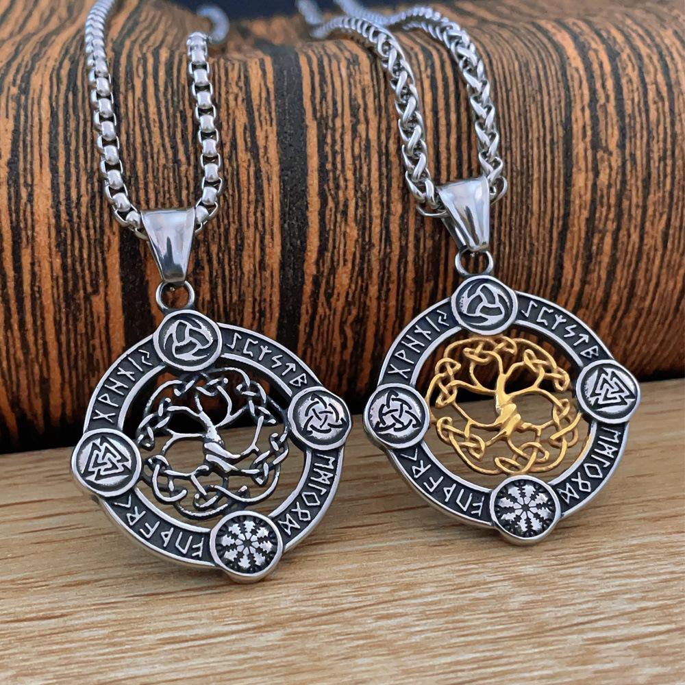 Stainless Steel Viking Odin Triangle Logo Rune Luna Tree of Life Necklace Pendant