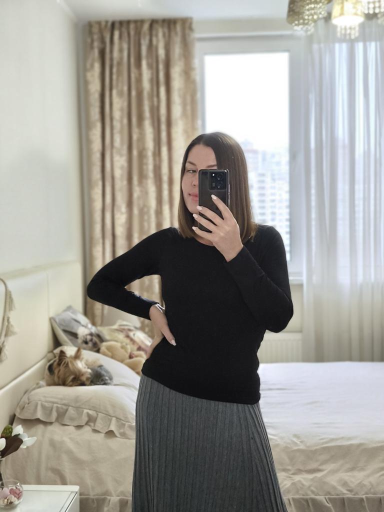 Gorgeous sweater, exactly what I was looking for! I ordered this sweater for autumn, and I'm really satisfied! First of all – the fabric is very pleasant on the body, feels high-quality, soft, and flexible thanks to the cotton and elastane blend. It also keeps you warm but isn't too heavy, perfect for transitions and also for cool winter days.. The cut fits perfectly – not too tight, but still flattering. The long sleeves give an elegant and comfortable look, and the solid color print goes with almost any outfit. I wear it both to work and for casual outings with jeans – it's simple and versatile. Overall – a great purchase, meets expectations exactly. Highly recommend!