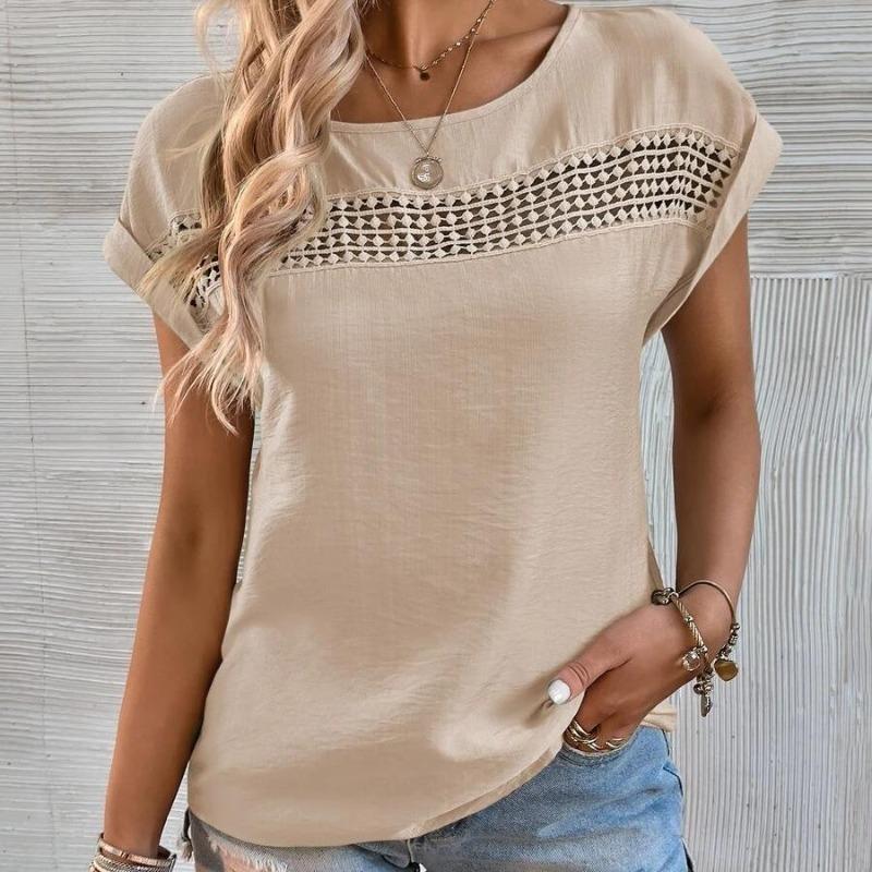 Women's Fashion Summer Spring Casual Solid Color Print Short Sleeve O Neck Blouses & Shirts