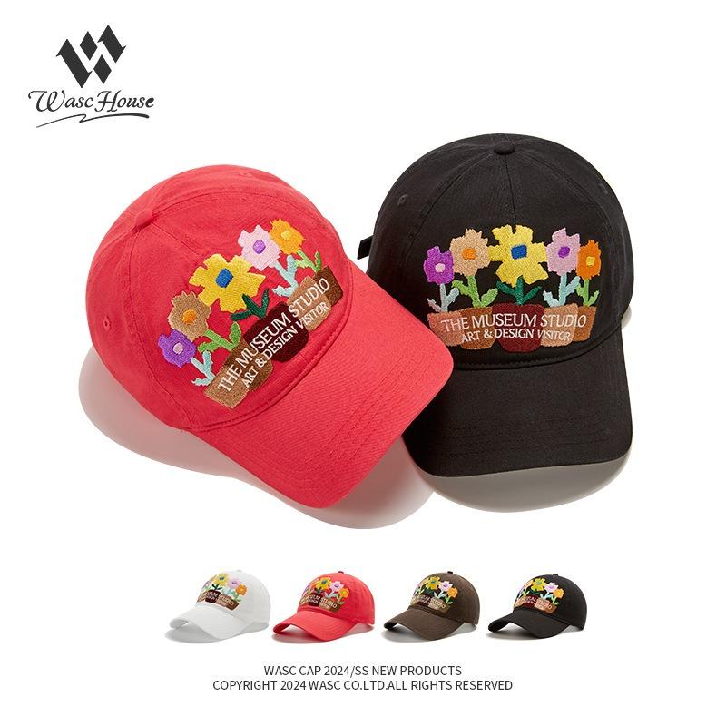 Korean Five-pot Flower Embroidery Baseball Cap Female Couple Soft Top Street Shade Sunscreen Cap Male