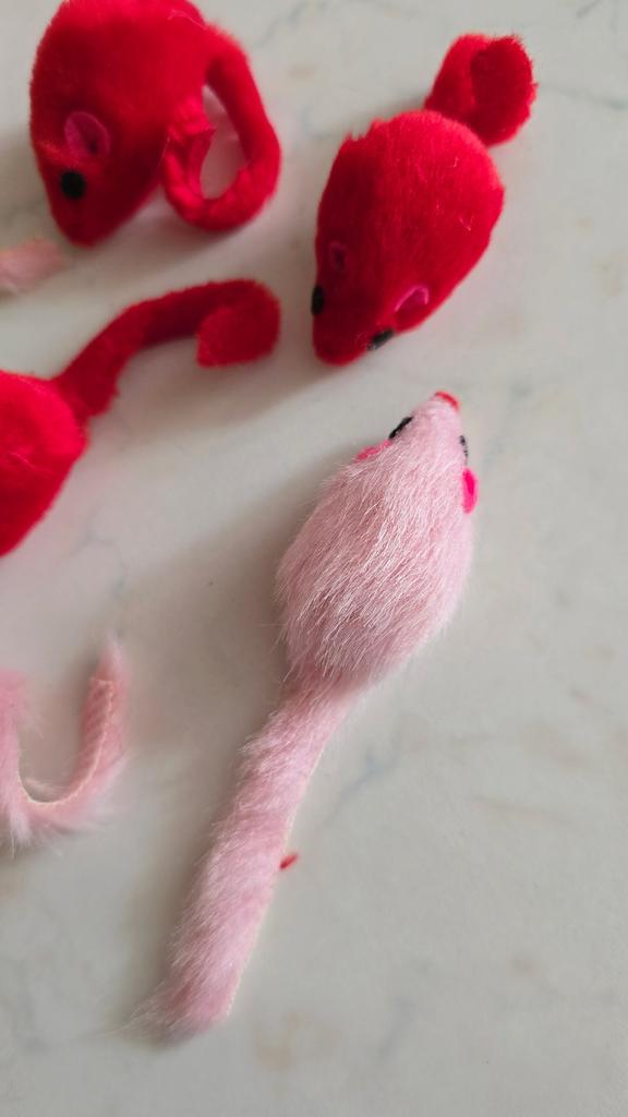 Set of toy mice for cats. This is a popular type of toy designed to stimulate cats' hunting instincts. Purpose: These toys help cats engage in physical exercise and mental stimulation, which is especially important for indoor cats. Gameplay: Cats love to chase, pounce, bat, and bite such toys, mimicking hunting. I recommend.š