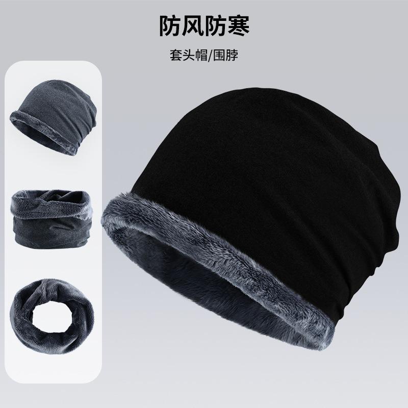 Winter Velvet Pure Cotton Pullover Hat Men's Windproof Warm Scarf Mask Integrated Stacking Hat Women's Outdoor Versatile Winter Hat