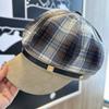 Early Autumn New Plaid Splicing Octagonal Hat Women's Belt Buckle Newsboy Hat Tide