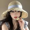 Hyunya Wind Colored Wood Beads Straw Hat Women's Summer Hollow Big Brim Sunshade Sunscreen Hat Foldable Fisherman Hat Tide