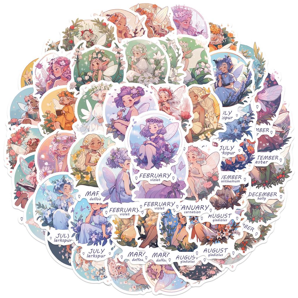 50 Cartoon Flower Elf Doodle Stickers Guitar Notebook Suitcase DIY Waterproof Stickers
