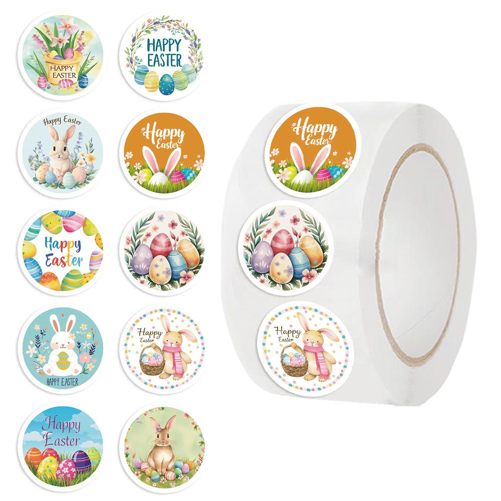 500 Pictures/roll Roll Sticker Tape Easter Bunny Handbook Material Decorative Envelope Seal Sticker