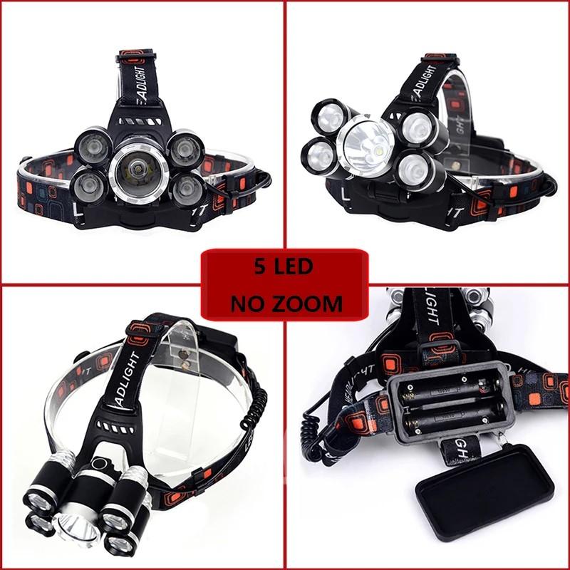 Led Aluminum Alloy Headlamp Fishing Charge Headlamp 5 * T 6 Charge Torch Headhunter Camping Flashlight 18650 Battery