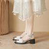Baotou Sandals Women's Summer New Thick Heel Middle Heel Silver Empty Mary Jane Single Shoes