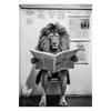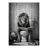 Funny Bathroom Lion Sitting On Toilet Reading Newspaper Poster Modern Wall Art HD Picture Canvas Print For Room Home Decor