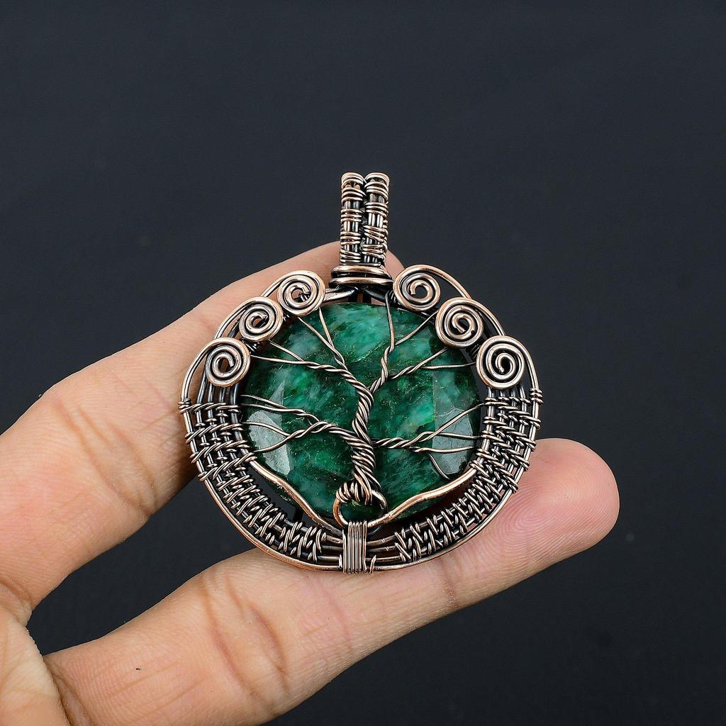 Tree Of Life Emerald Pendant, 999 Copper Wire Wrapped Pendant Gemstone Jewelry, Handmade Pendant Amazing Jewelry, Gift For Her