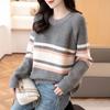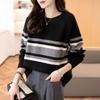Round-neck Color-blocking Sweater Loose Large-sized Casual Pullover for Women Fashionable Striped Long-sleeved Knitted Sweater for Autumn and Winter