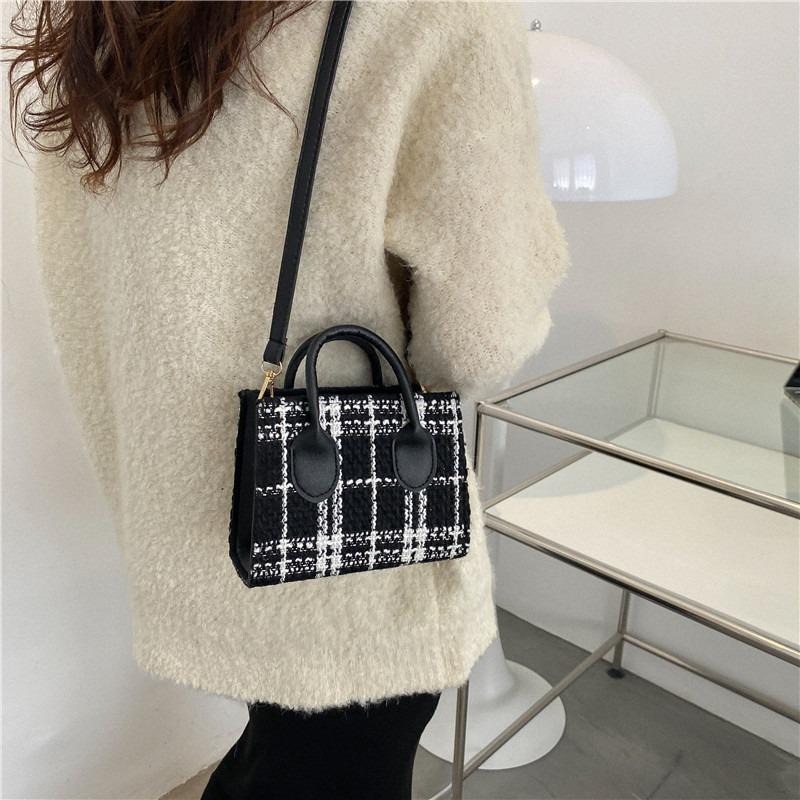 New Fashionable Contrasting Stripes Casual Simple Commuting Large Capacity Shoulder Bag Messenger Bag Handbag Women
