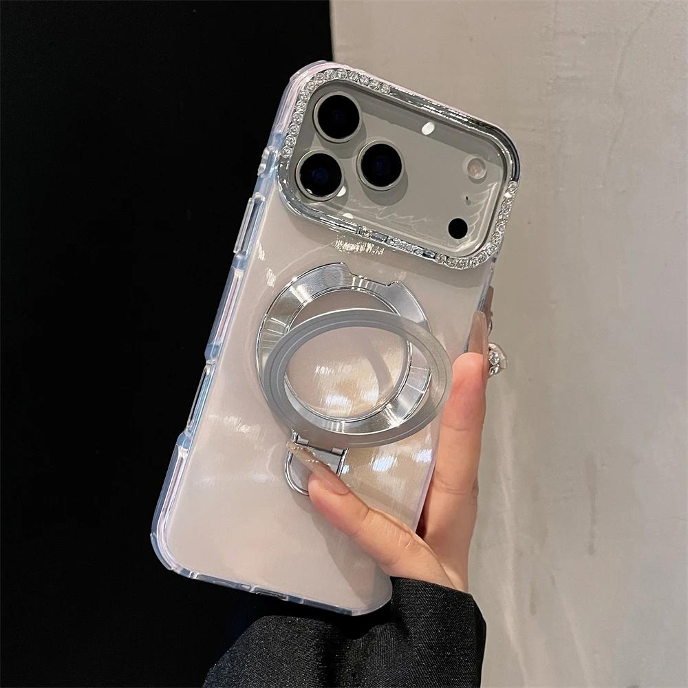 Laser Jelly Candy Magnetic Shockproof Case for iPhone 17 Air 16 15 14 13 Pro Max Bracket Stand Diamond Camera Frame Glossy Cover