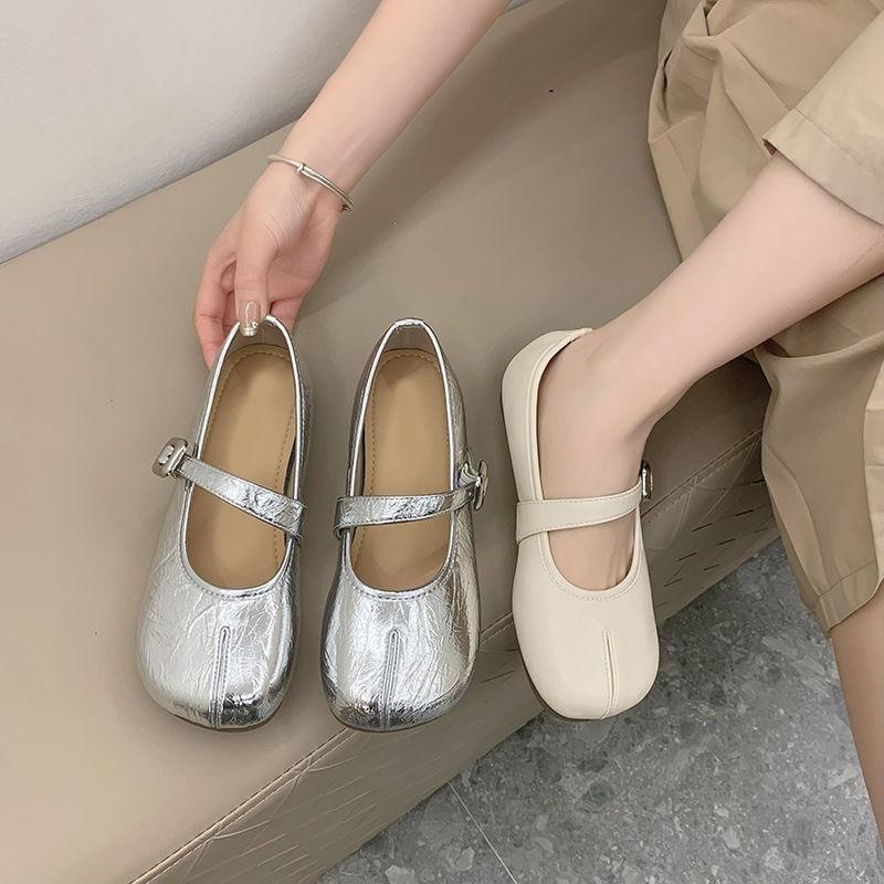 Mary Jane Shoes Summer New Shallow Mouth Round Head One Word Buckle Strap Flat Bottom Fashion Versatile Pearl Shoelace Single Shoes
