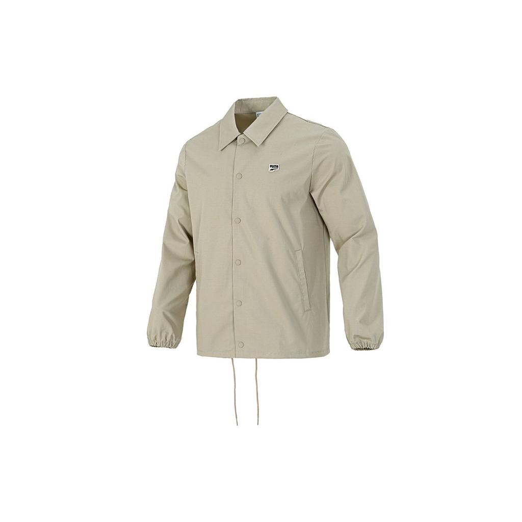 Puma Embroidered Logo Solid Color Track Jacket Men Outerwear Khaki 532172-42