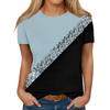 Women's Color Block Glitter Stripe Short Sleeve T-shirts Summer Round Neck 3D Print Top Fashionable Casual Tops