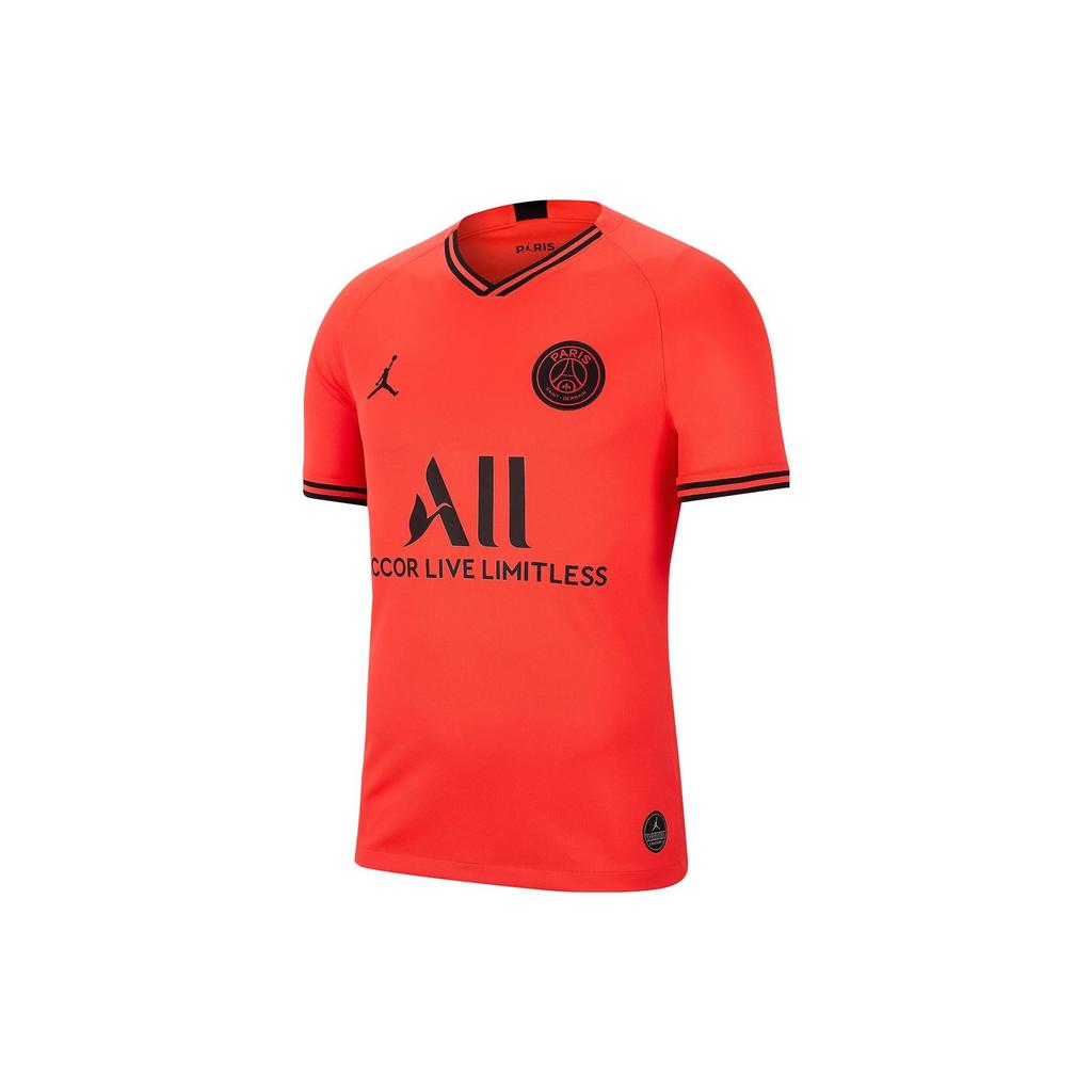 Jordan PSG Collaboration V-Neck Letter and Number Print Short Sleeve Soccer Jersey Fan Version 2019-20 Season Men Tops Orange DB2598-613