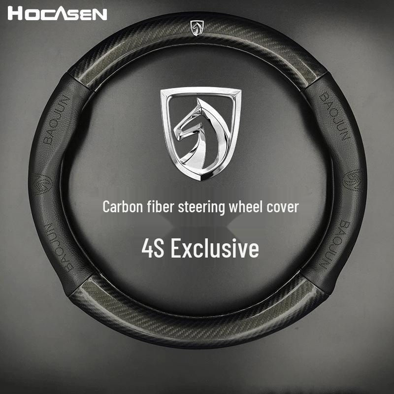 Baojun Car D-Shape Carbon Fiber Steering Wheel Cover for Models 560, 730, 630, 610, 330, Lechi - All Seasons