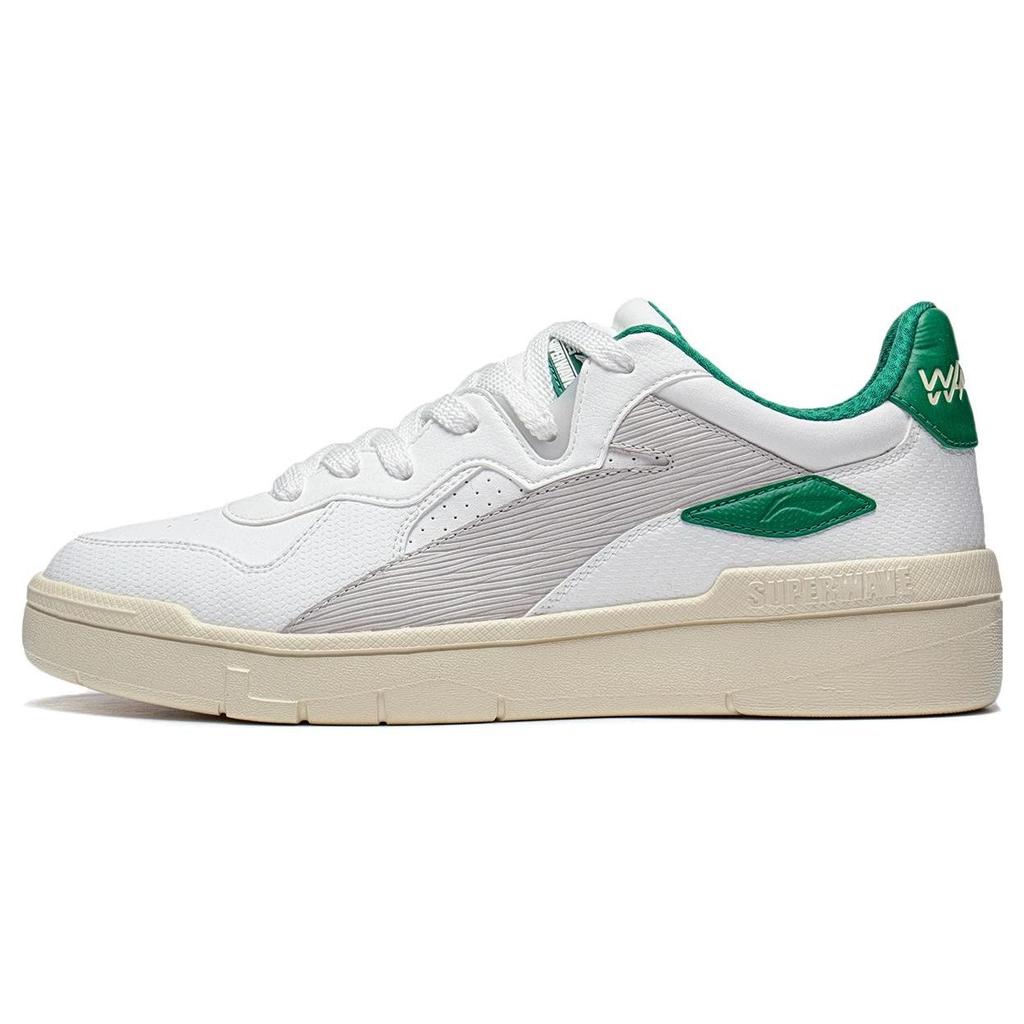 Li Ning We Wo Lite Round Toe Lace-Up Shock Absorbing Wear-Resistant Low-Top Skate Shoes Men Sneaker Beige Green AGCT115-5