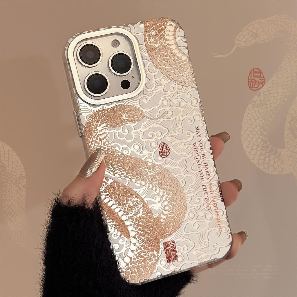 Tengyun Golden Snake Is Suitable for Apple 16 Mobile Phone Case Snake Year IPhone 15 Promax National Trend 12 Personality 14 Laser Hard