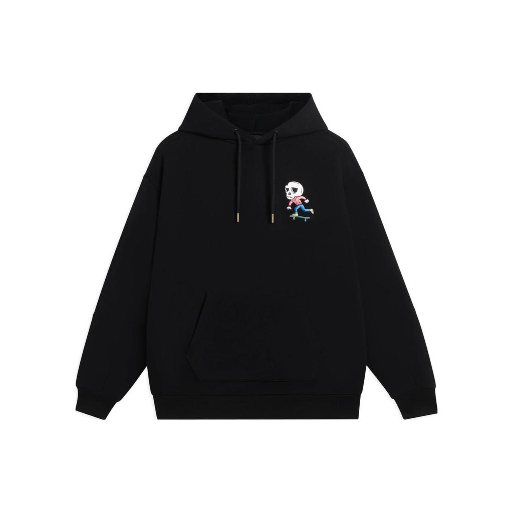 Li-Ning Solid Color Skull Print Cotton Drawstring Hoodie Men Tops AWDS913-4