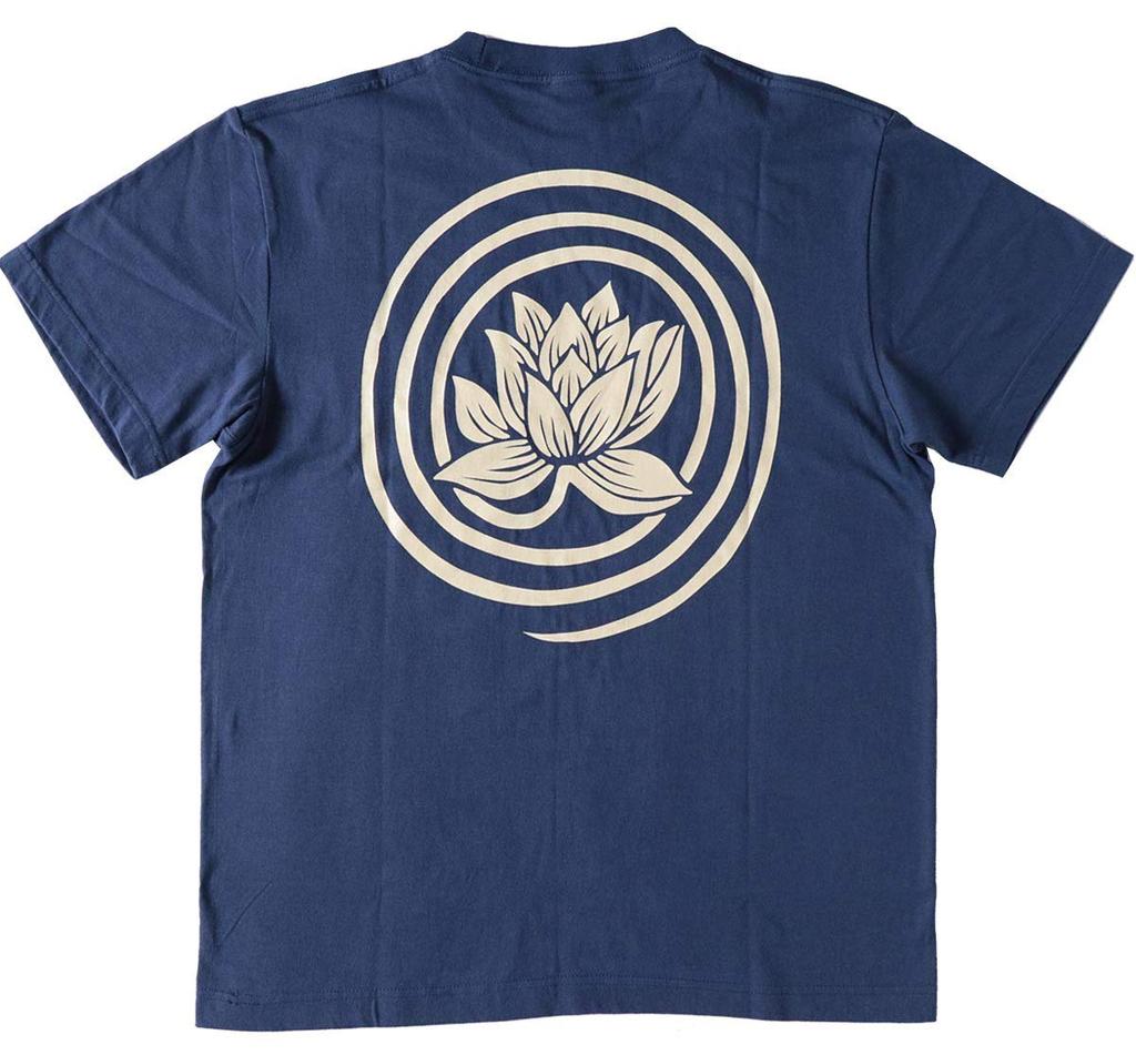 Marble Market Short Sleeve Lotus T-Shirt with Back Print, 100% Cotton, Simple, Stylish, Cool, Ethnic, Asian, Uniform, Unisex (Navy/XL)