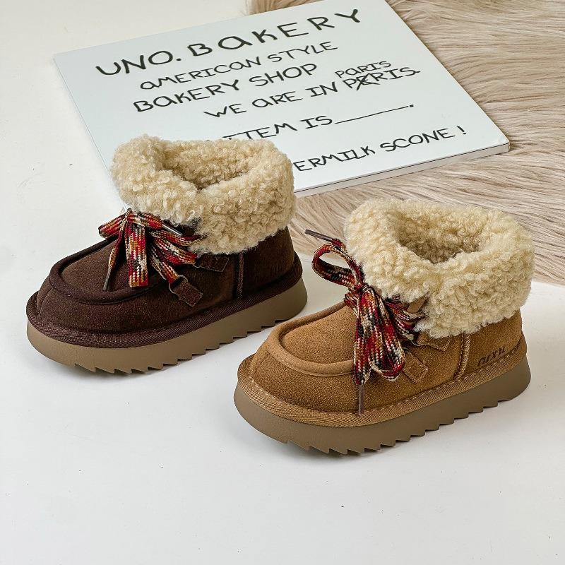 Winter New Children's Snow Boots Frosted Leather Large Cotton Thermal Boots Teddy Fluffy Boys and Girls Cotton Shoes