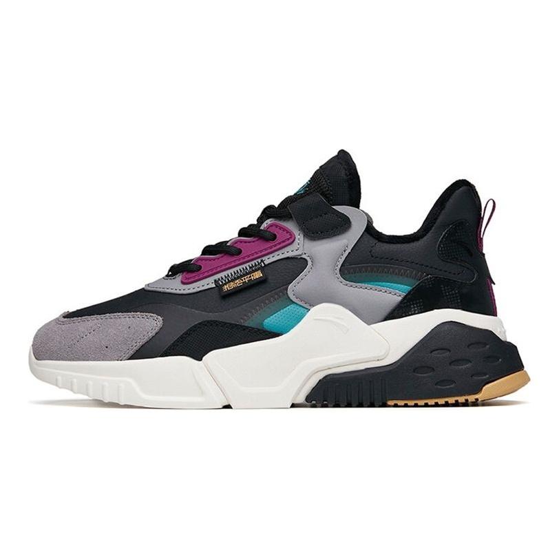 Anta Magic Cube Synthetic Leather Fleece Non-Slip Wear-Resistant Warm Low-Top Dad Shoes Men Sneaker Black Gray 112148808-7