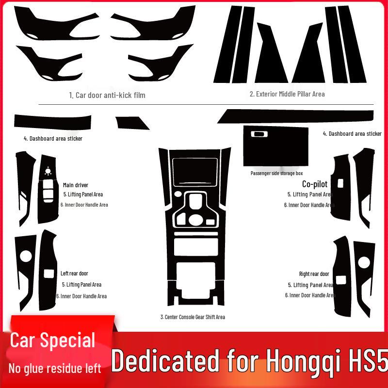Hongqi HS5 Interior Carbon Fiber Anti-Kick Pad & Gear Shift Sticker Set
