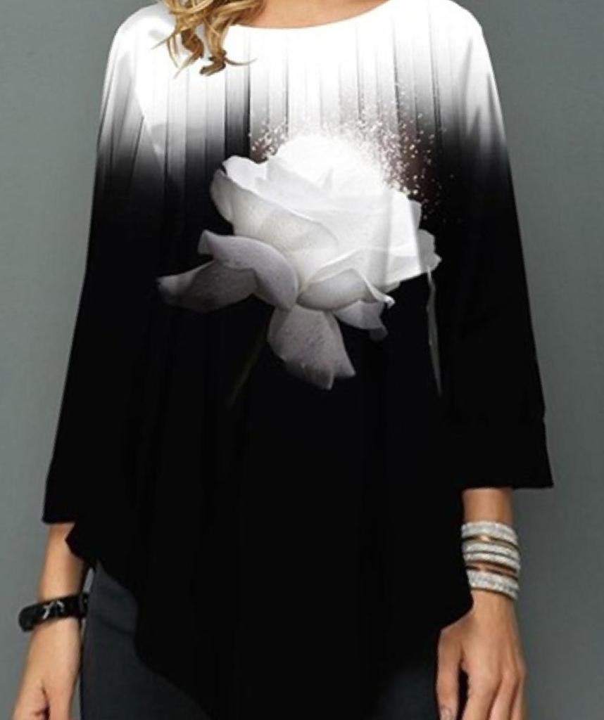 Women Fashion Printed Casual Irregular Hem Round Neck 3/4 Sleeves Plus Size Leopard Print T-Shirt Loose Pullover Autumn Winter Blouse