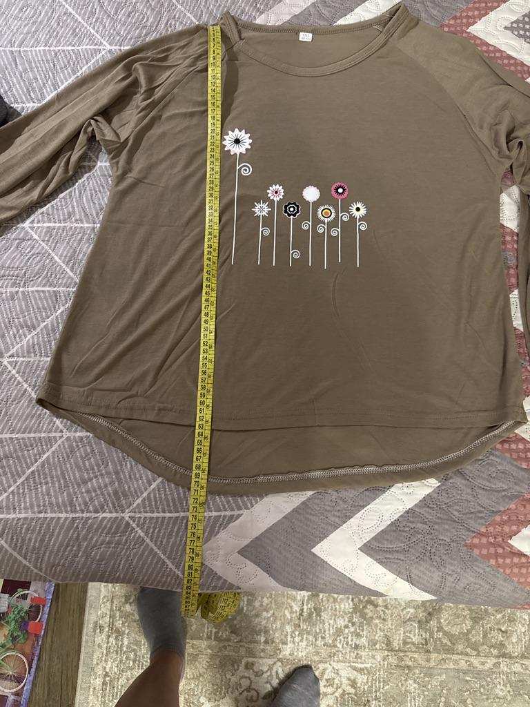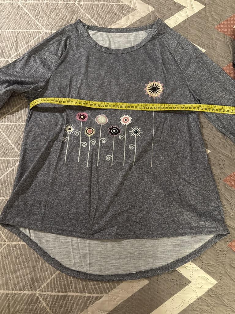 Ladies Flowers Printed Round Neck Long Sleeves Plus Size Cotton Tunic Loose T-Shirt Summer New Casual Fashion Women Clothing
