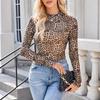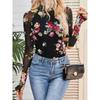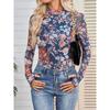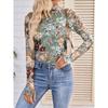Spring and Autumn Fashion Pullover High Neck Long Sleeve Lace Floral Mesh Base Shirt Women