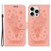 For iPhone 16 Pro Max Wallet Case PU Leather Phone Cover Butterfly Flower Imprint