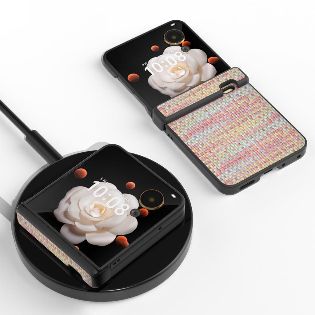 For Honor Magic V Flip 5G Case Plaid Texture Leather+PC Phone Cover Hinge Protection