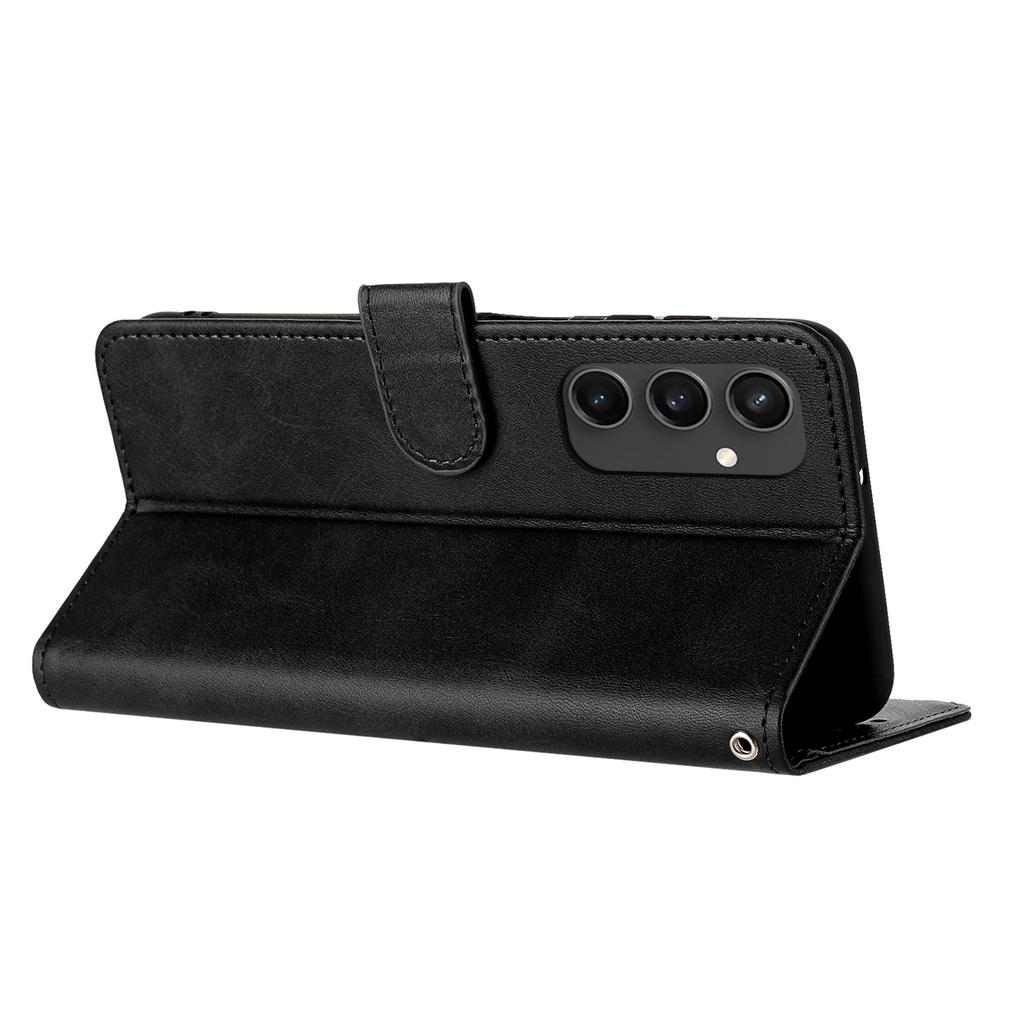 For Samsung Galaxy S24 FE Case PU Leather Purse Calf Texture Phone Cover with Hand Strap