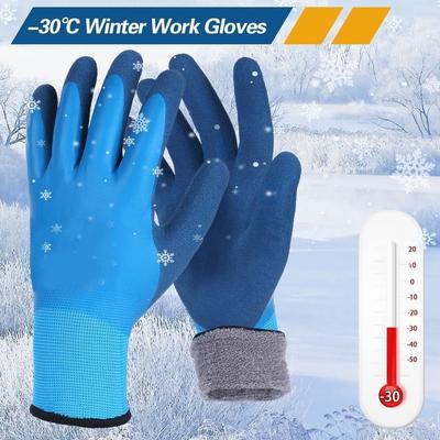 1Pair Blue Waterproof Thermal Insulated Work Gloves Thermal Fully Latex Coated Winter Freezer Safety