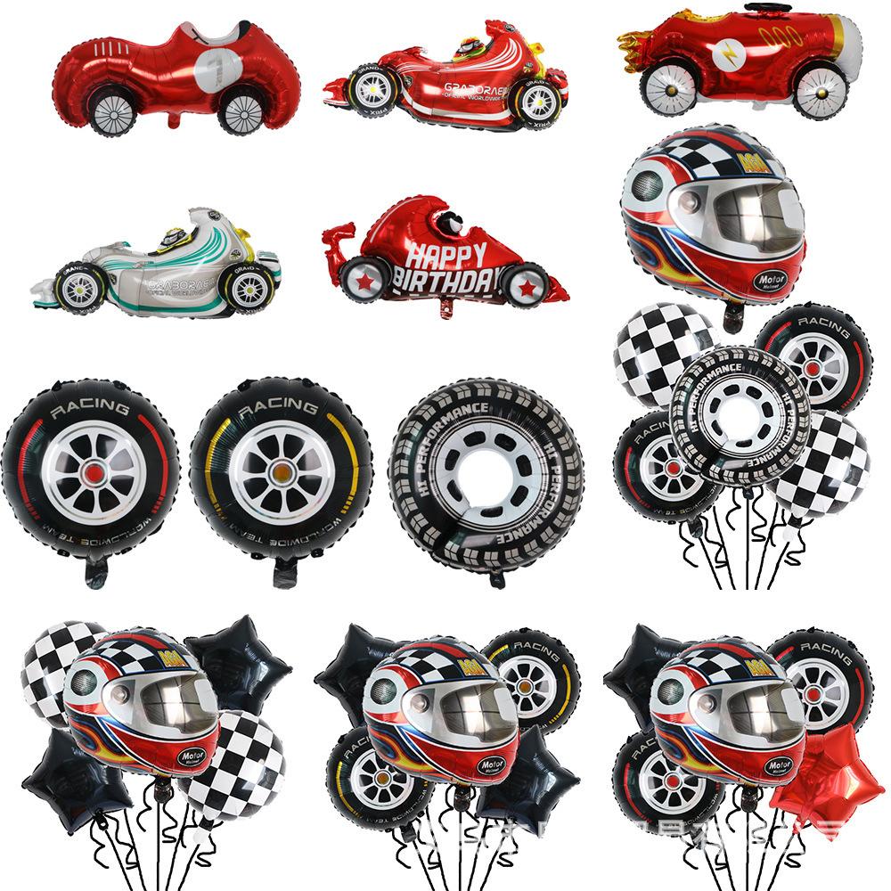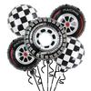 Tire Helmet Balloon 18 Inch Black And White Plaid Round Aluminum Film Balloon Racing Theme Party Decorative Balloon