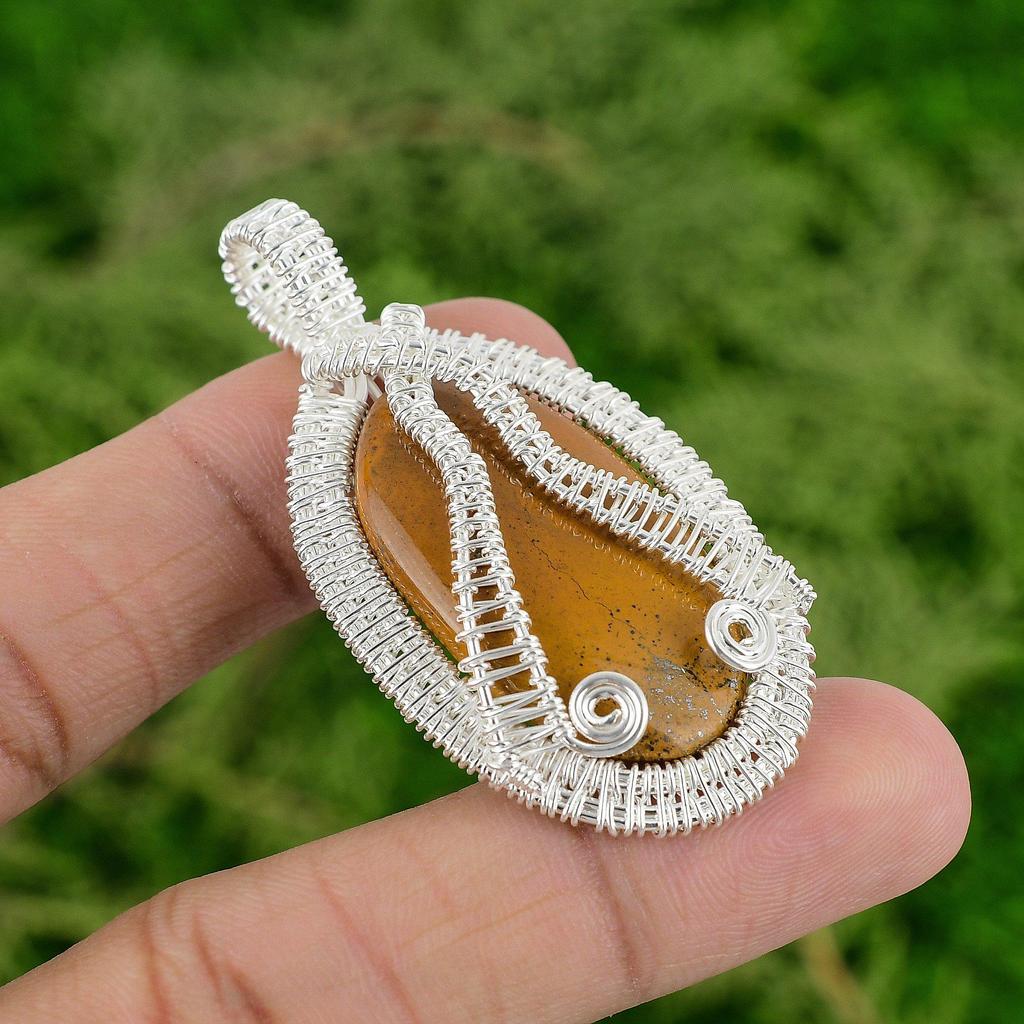 Honey Dendrite Opal Gemstone 925 Sterling Silver Bezel Wire Wrap Pendant Jewelry