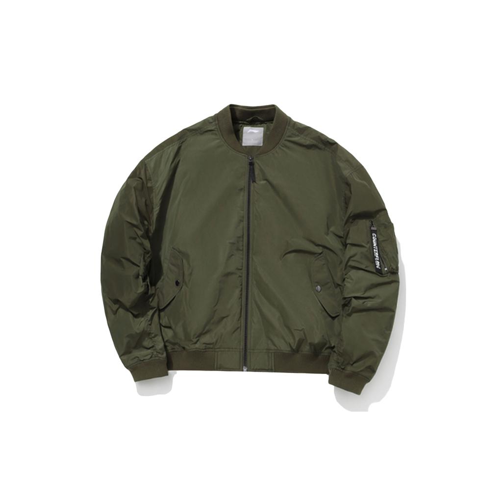 Li Ning CF Soaring Series Warm Casual Sports Baseball Pilot Cotton Jacket Winter Men Jacket Olive-Green AJMQ749-3