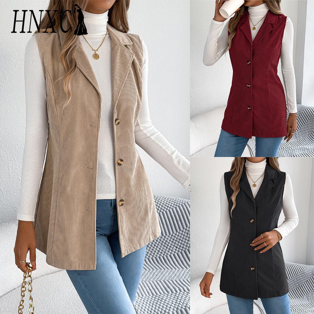 HNXC Autumn and Winter Casual Single-breasted Suit Collar Corduroy Vest Jacket for Women