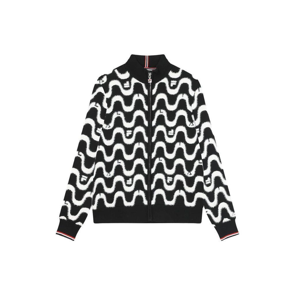 Fila Fleece Wave Pattern Stand Collar Long Sleeve Knit Cardigan Women Cardigans Black F11W341404F-BK
