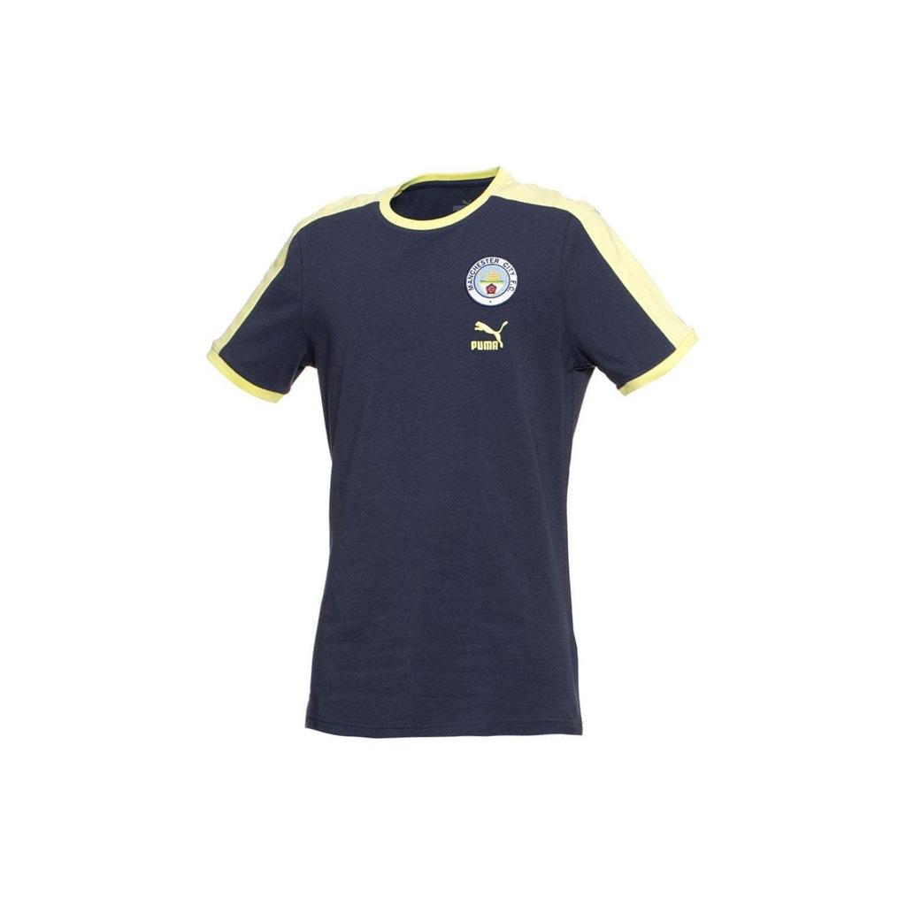 Puma 2022-23 Manchester City Color Block Embroidered Badge Crew Neck Short Sleeve Regular T-Shirt Men Tops Dark-Blue 769495-04